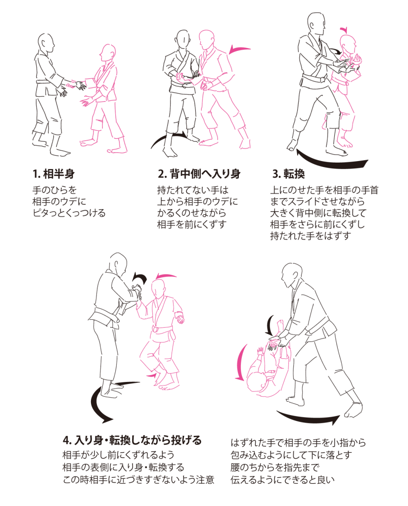 ですが、小手返しは、崩し方、手の返し方、投げ方など、かなり道場によって違いがある技でもあると思います。どの技も違うところはたくさんあるのですが…